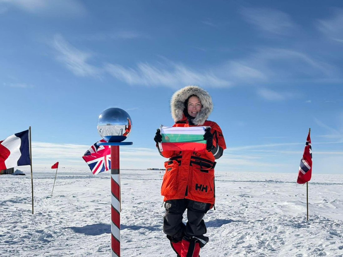 Мариета Георгиева развя българския флаг на най-южната точка на планетата. След изкачването на връх Винсън в Антарктида тя успешно завърши 110-километров ски преход от 89-ия градус южна ширина до Южния полюс.