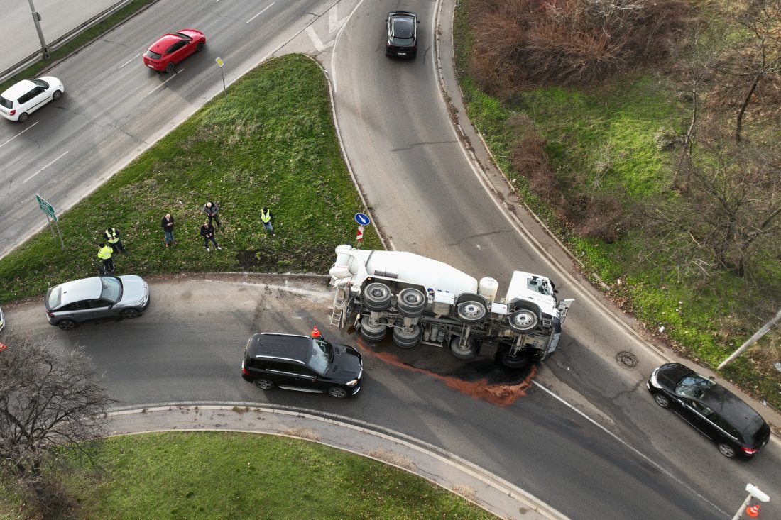 Бетоновоз се обърна в София, няма пострадали, съобщиха от Столичната дирекция на вътрешните работи (СДВР).