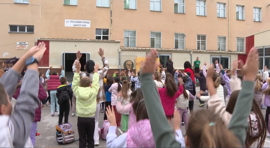 Тази сутрин в 3-то основно училище „Димитър Талев“ в Благоевград учениците за първи път правиха сутрешна гимнастика заедно с кмета на града и изявени спортисти и треньори.