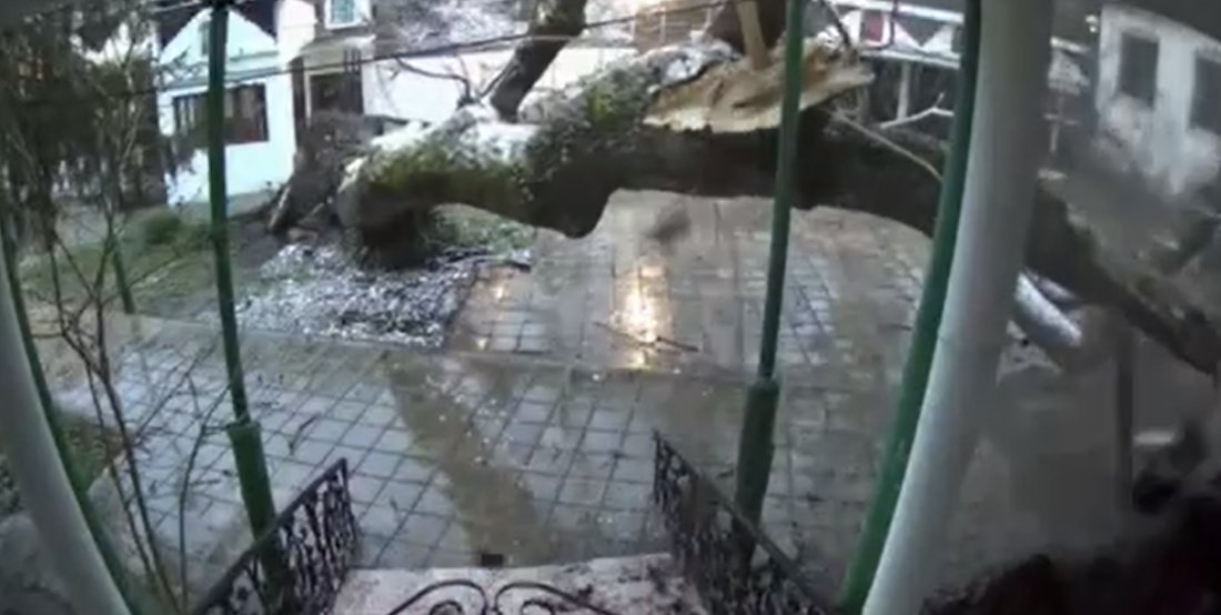 Най-старото дърво в двора на манастир „Рождество Богородично“ в Бургас е паднало този следобед около 17:30 часа. Кадри от охранителна камера в манастира са запечатали рухването на дървото.