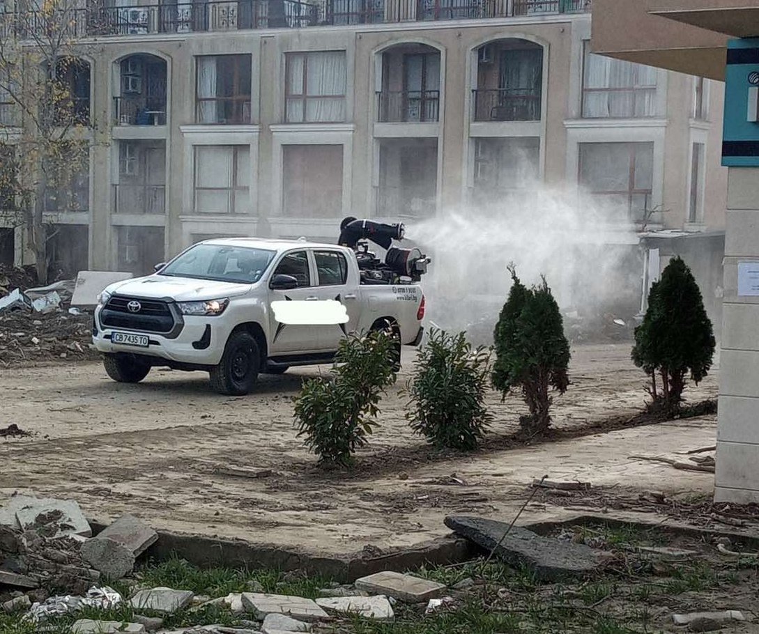 Обработката е направена с професионална техника, предназначена за мащабни действия, като е използван препарат, съобразен с характеристиките на обекта и изискванията за безопасност.