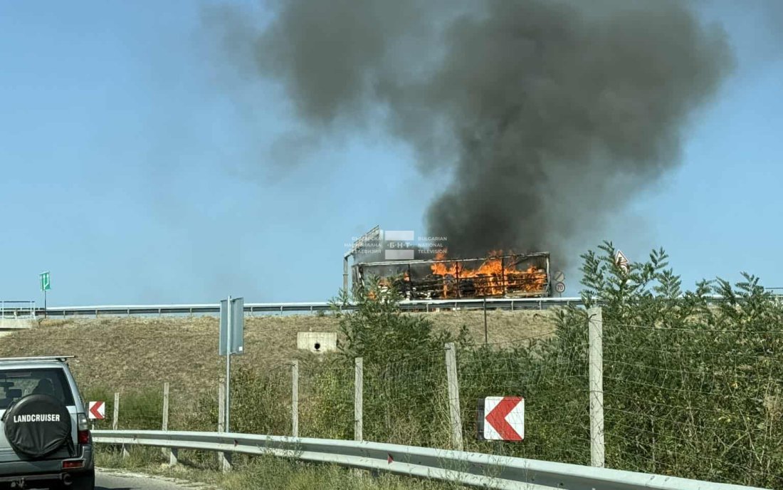 Камион избухна в пламъци и напълно изгоря на магистрала „Струма“. Инцидентът е станал до отбивката за Дупница в посока София. В района има силно задимяване.