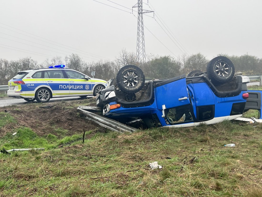 Инцидентът е станал днес в 09:46 часа в района на пътния възел при с. Ягода, в посока Стара Загора, съобщиха от полицията. По първоначална информация автомобилът, управляван от 68-годишния мъж, се е обърнал встрани от пътното платно.