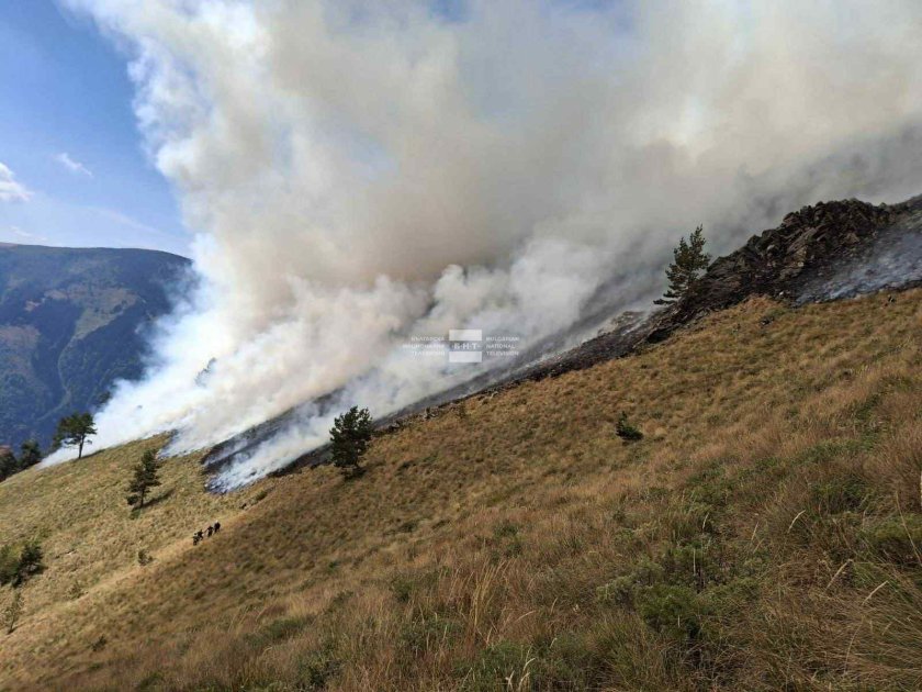 Пожарът в Природен парк „Рилски манастир“ се разраства. Той е обхванал площ от над 700 декара, съобщиха от парка. Горят треви и единични дървета, включително и ценни екосистеми в района на връх Баба и долината на река Илийна.