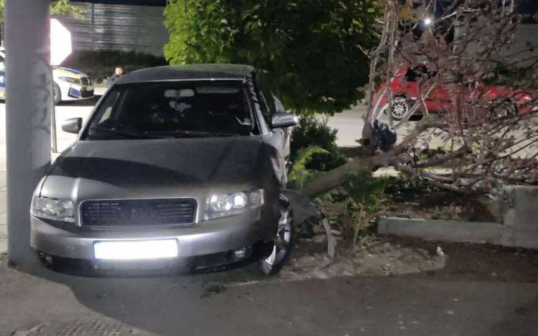 Home » След гонка с полицията: Шофьор без книжка се заби в полицейския участък в Хитрино