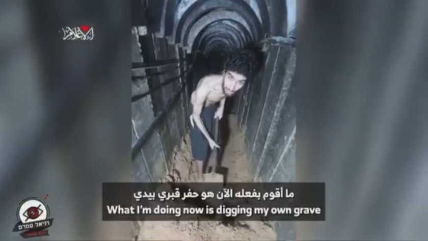Смразяващо пропагандно видео, разпространено от групировката Хамас преди два месеца, показва Евиатал който казва, че сам копае гроба си.