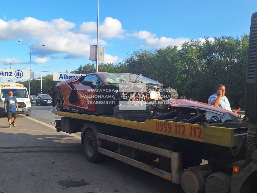 На километър след изхода от Варна посока София, лек автомобил „Ламборгини“ настига и блъска други две коли.