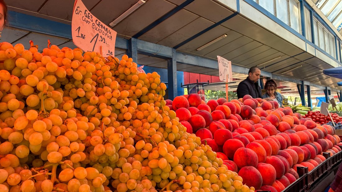 При плодовете по-скъпи са прасковите – с 3,54 на сто до 4,02 лева за килограм, и дините – с 2,56 на сто до 0,70 лева за килограм. По-евтини са гроздето – с 2,93 на сто до 2,90 лева за килограм, ябълките – с 2,12 на сто до 2,77 лева за килограм, лимоните – с 1,68 на сто до 4,40 лева за килограм.