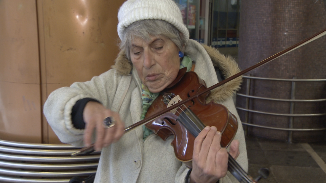С всяко следващо стъпало към подлеза на Софийския университет звуците от цигулката на Чая Чанева стават все по-силни. Хората й оставят и евро, и левчета.