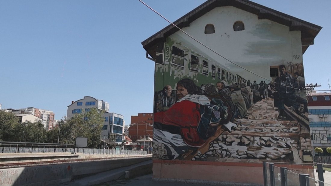 Художници на графити от цял свят преобразяват стените на стари сгради в град в Косово.