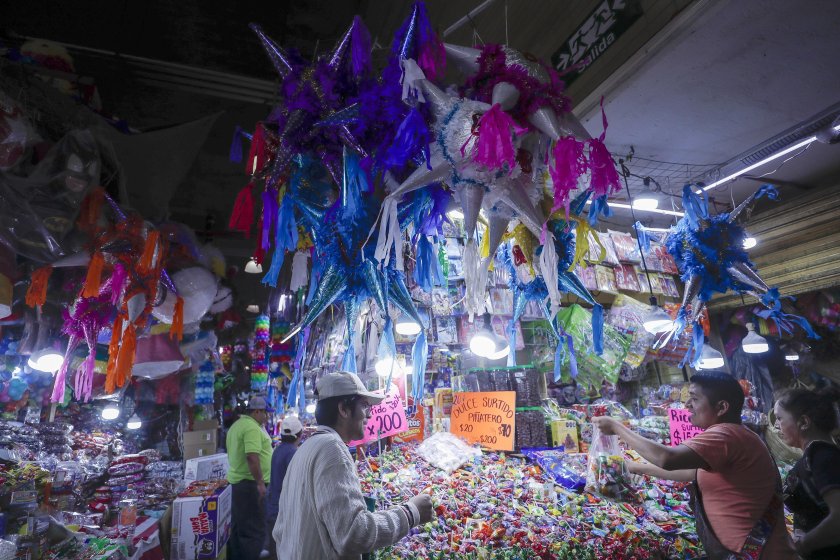 Коледното осветление на главния площад на мексиканската столица привлича хиляди посетители, които се наслаждават на огромни светлинни инсталации.