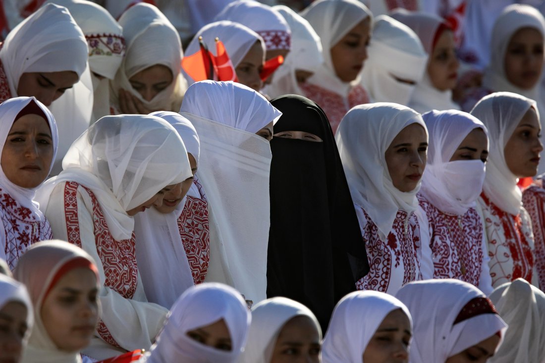 Гостите развяваха турски и палестински знамена и се радваха на изпълнението на традиционен за района танц.