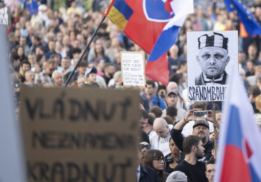 Многохиляден протест се състоя тази вечер в Братислава срещу правителството на Роберт Фицо, предаде „Франс прес“. Според организаторите на протеста от опозиционната партия „Прогресивна Словакия“ на призива им са откликнали 18 хиляди души. Демонстрантите се събраха пред правителствената сграда с възгласи за оставка и затвор за премиера.