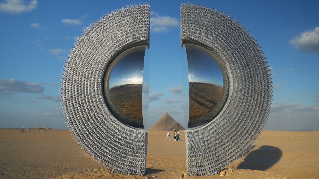 Десет съвременни творци показват монументални инсталации на фона на пирамидите в Гиза.