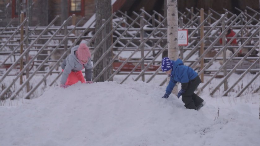Сняг най-после падна в селото на Дядо Коледа в Лапландия.