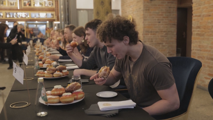 Понички с три различни вкуса – череша, портокал и роза – очакваха състезателите в Краков. Но вкусът едва ли имаше значение. Целта беше да се изядат колкото може повече. Победителят успя да изяде седем понички за пет минути.