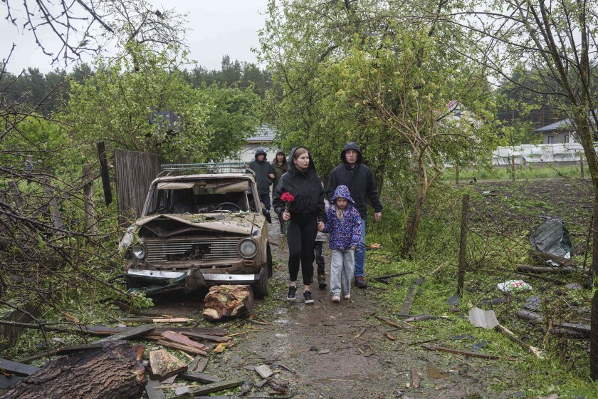 С въздушна тревога и мощни експлозии започна Денят на Киев – празникът на украинската столица, свързан с 1 500 години от основаването й. Част от жителите й слязоха в метрото, за да се предпазят, други – продължиха да снимат. Няколко часа по-късно, министърът на вътрешните работи на Украйна обобщи – жертви и десетки ранени, щети по 80 жилищни сгради и близо 30 пожара на територията на 22 украински области. Сред най-засегнатите е Мархаливка – село на около 40 км от Киев.