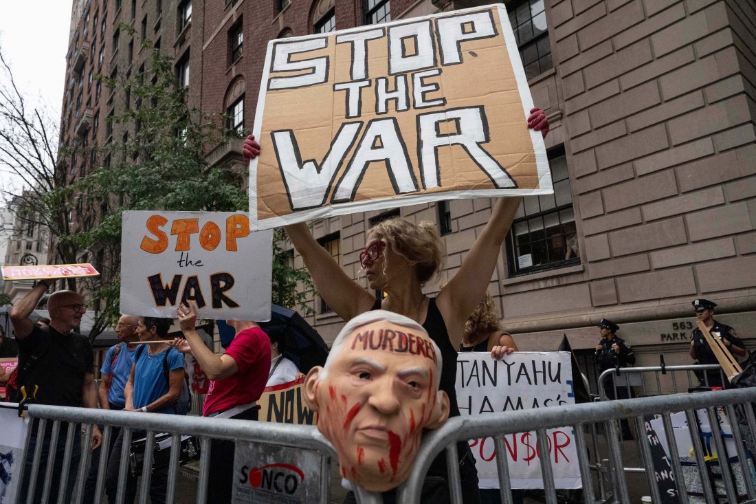 Пропалестински и произраелски демонстранти се събраха пред хотела в Ню Йорк, където е отседнал израелският министър-председател Бенямин Нетаняху.