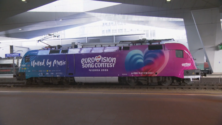 Влакът на „Евровизия“ потегли от Виена. Австрийските държавни железници представиха специално брандиран локомотив с дизайна на конкурса.