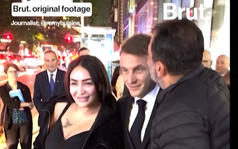 Макрон е вървял към сградата на Постоянното представителство на Франция в ООН, когато е спрян от полиция на пешеходна пътека.
