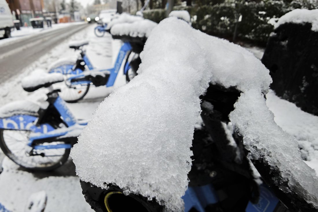 Испанската столица Мадрид осъмна в сняг, след като регионът беше връхлетян от бурата „Кристин“.